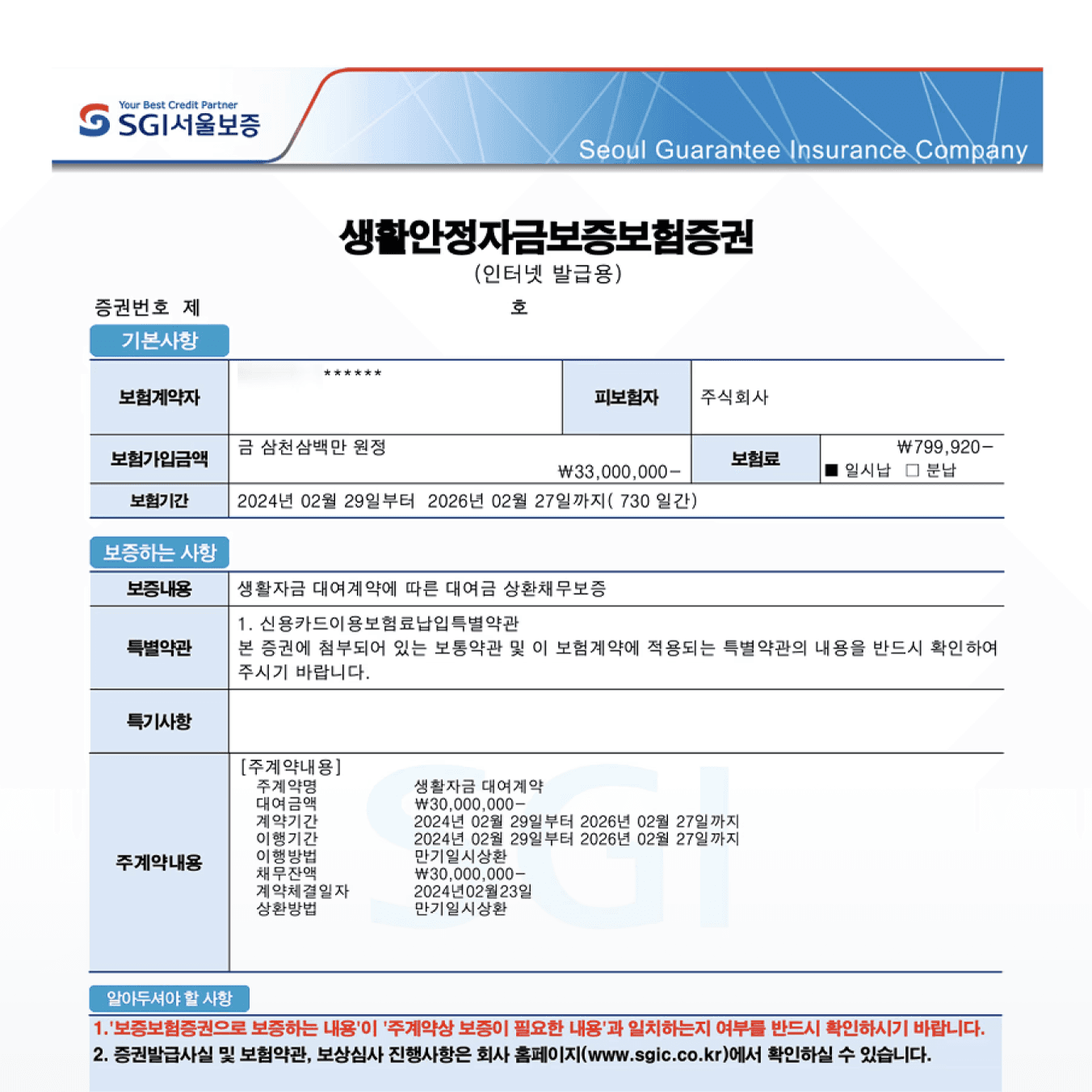 워크드는 SGI 보증보험 라이센스를 보유하고 있어요.